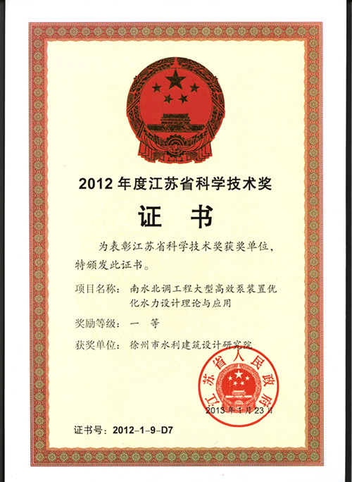 2012年度江蘇省科學(xué)技術(shù)一等獎